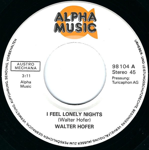 Vinyl / Walter Hofer (4) - I Feel Lonely Nights