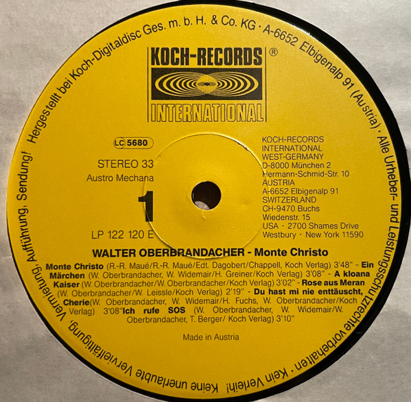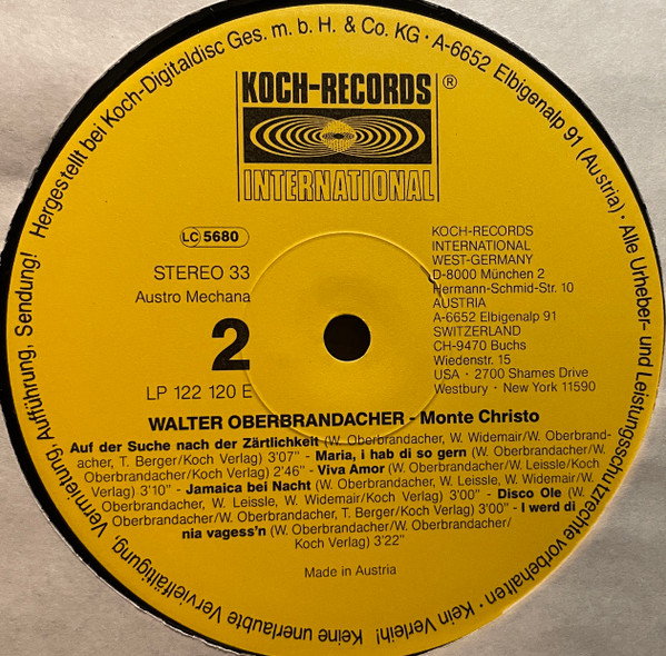 Vinyl / Walter Oberbrandacher - Monte Christo