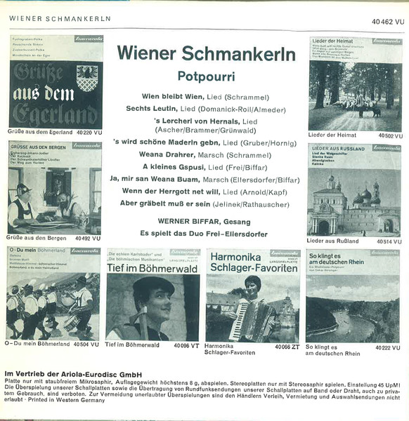 Vinyl / Werner Biffar / Duo Frei-Ellersdorfer - Wiener Schmankerln