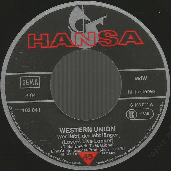 Vinyl / Western Union (3) - Wer Liebt, Der Lebt Länger / Versuch' Es Noch Einmal Mit Mir
