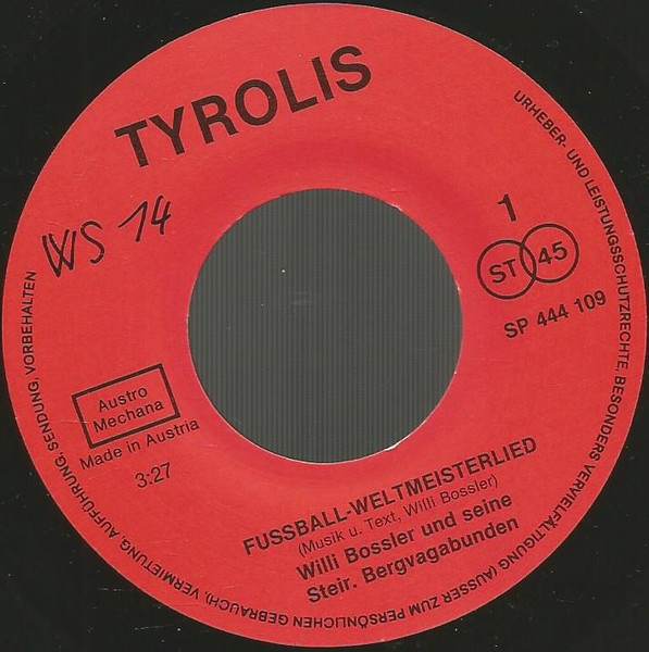 Vinyl / Willi Bossler Und Die Steir. Bergvagabunden* - Fussball-Weltmeisterlied