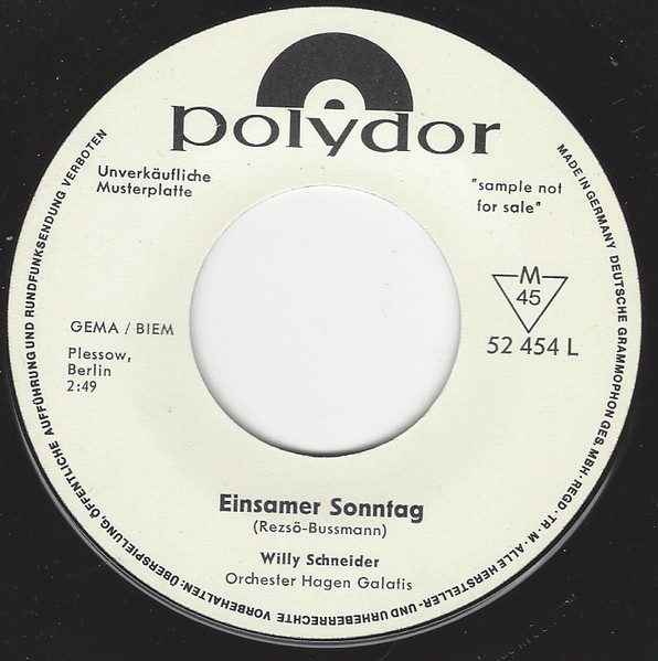 Vinyl / Willy Schneider - Einsamer Sonntag