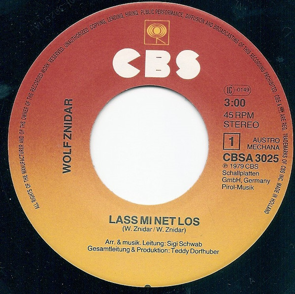 Vinyl / Wolf Znidar - Lass Mi Net Los / I Ko Net Wana
