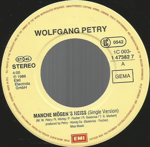 Vinyl / Wolfgang Petry - Manche Mögen's Heiss