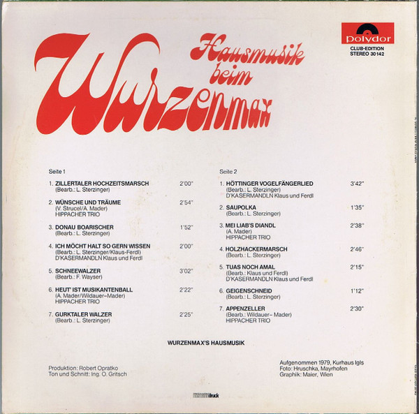 Vinyl / Wurzenmax's Hausmusik - Hausmusik Beim Wurzenmax