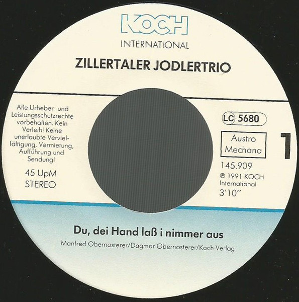 Vinyl / Zillertaler Jodlertrio - Du, Dei Hand Lass I Nimmer Aus