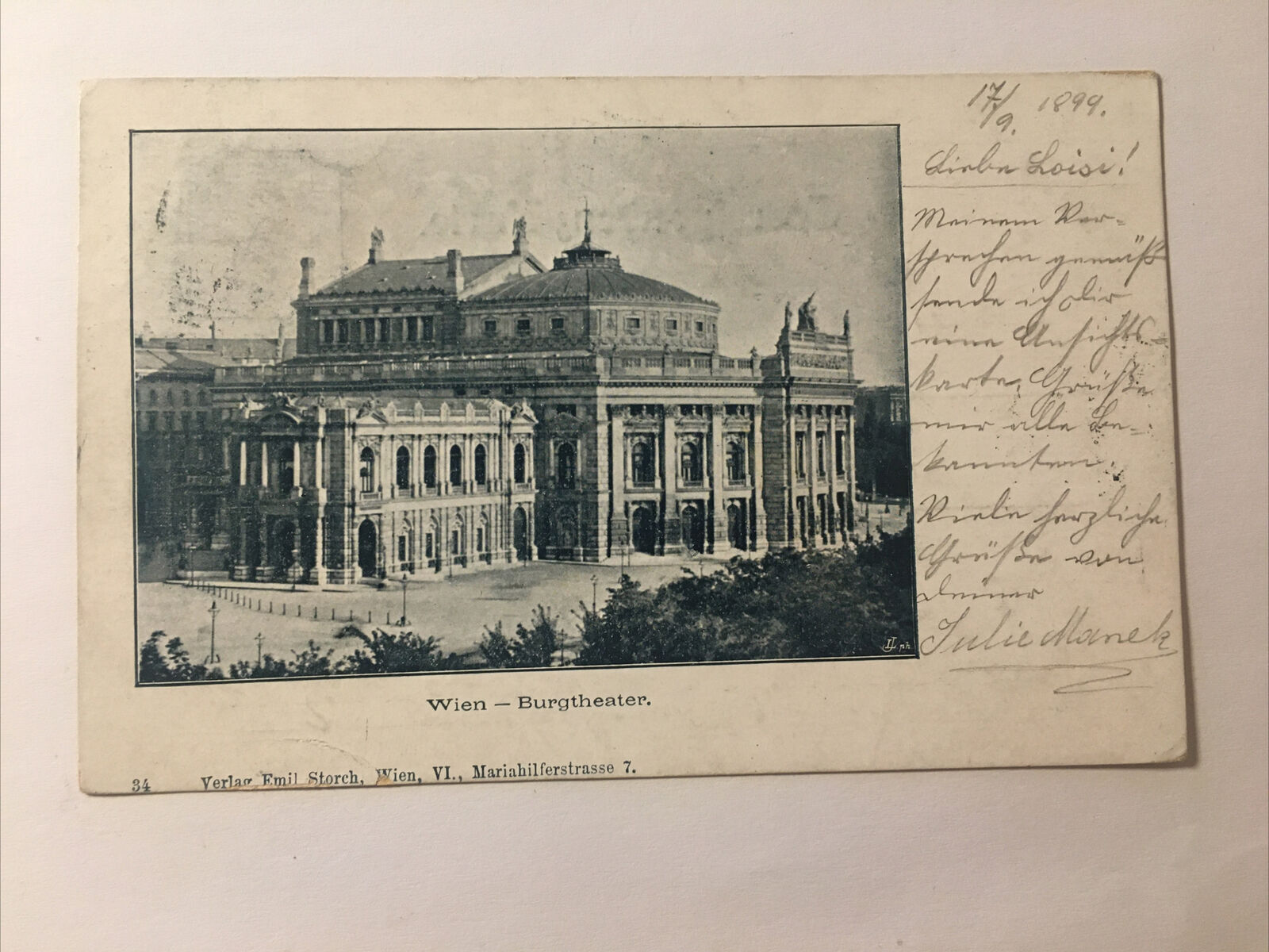 Diese Ansichtskarte ist nicht nur ein wunderschönes Sammlerstück, sondern auch ein perfektes Geschenk für alle, die Wien und seine Kultur lieben. Fügen Sie sie Ihrer Sammlung von Ansichtskarten aus Österreich hinzu oder rahmen Sie sie ein und hängen Sie sie als Erinnerung an Ihre Zeit in Wien an die Wand.